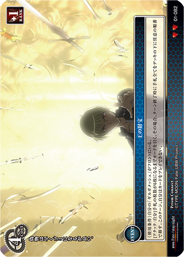 《使用条件》自分の「ギルガメッシュ」がフロントにいる。[アタック/自分]手札の枚数が6枚になるまでカードを引く。その場合、ターン終了時に手札全てをデッキの下に任意の順番で移す。このターン、自分はカードをプレイできない。