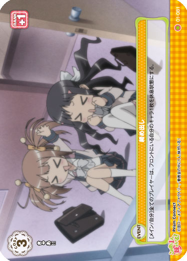 [メイン/自分]全てのプレイヤーは、フロントにいる自分のキャラ1枚を休息状態にする。