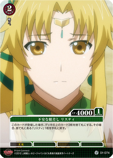 このカードが登場した場合、デッキの上のカード3枚を捨て札にする。その場合、捨て札にある「リスティ」1枚を手札に戻す。