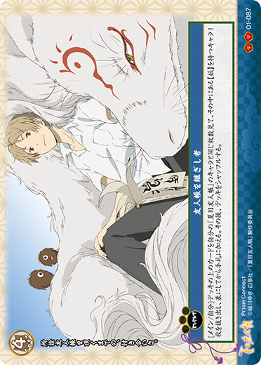 [メイン/自分]デッキの上のカードを自分の『夏目友人帳』のキャラと同じ枚数見て、その中にある【妖】を持つキャラ1枚を抜き出し、表にしてから手札に加える。その後、デッキをシャッフルする。