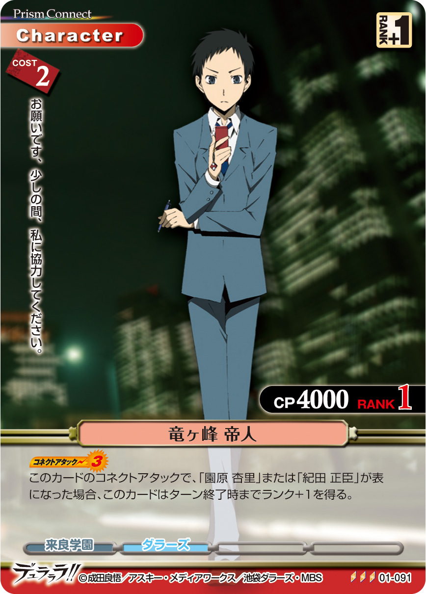 [コネクトアタック(3)]このカードのコネクトアタックで、「園原 杏里」または「紀田 正臣」が表になった場合、このカードはターン終了時までランク+1を得る。