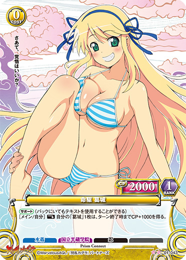 [サポート](バックにいてもテキストを使用することができる)[メイン/自分](休)自分の「葛城」1枚は、ターン終了時までCP+1000を得る。