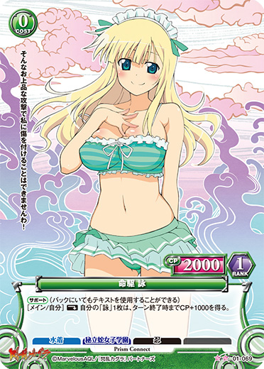 [サポート](バックにいてもテキストを使用することができる)[メイン/自分](休)自分の「詠」1枚は、ターン終了時までCP+1000を得る。