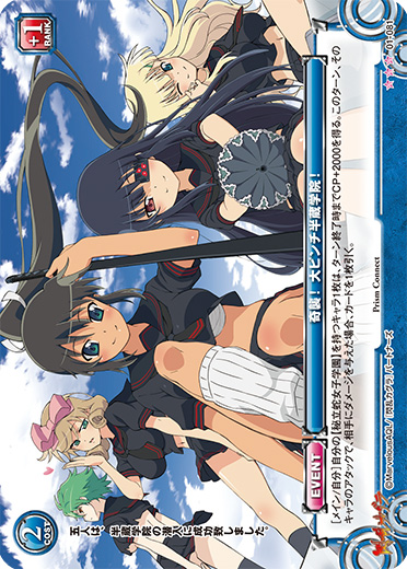 [メイン/自分]自分の【秘立蛇女子学園】を持つキャラ1枚は、ターン終了時までCP+2000を得る。このターン、そのキャラのアタックで、相手にダメージを与えた場合、カードを1枚引く。