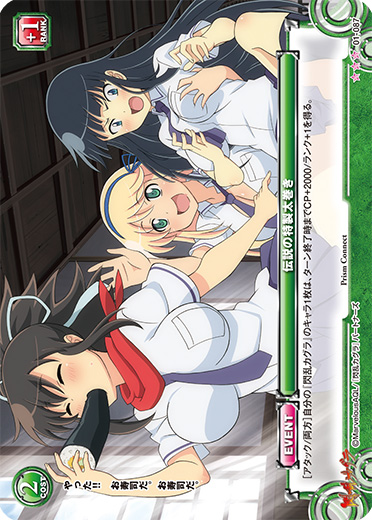[アタック/両方]自分の『閃乱カグラ』のキャラ1枚は、ターン終了時までCP+2000/ランク+1を得る。