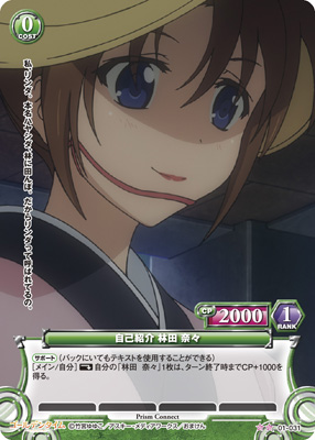 [サポート](バックにいてもテキストを使用することができる)[メイン/自分](休)自分の「林田 奈々」1枚は、ターン終了時までCP+1000を得る。