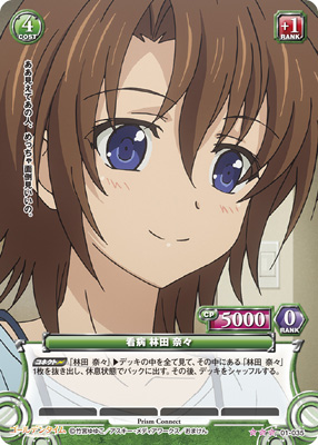 [コネクト「林田 奈々」]→デッキの中を全て見て、その中にある「林田 奈々」1枚を抜き出し、休息状態でバックに出す。その後、デッキをシャッフルする。