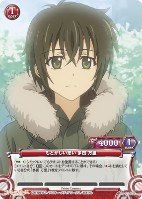 [サポート](バックにいてもテキストを使用することができる)[メイン/自分](宣)このカードをデッキの下に移す。その場合、コストを満たしている自分の「多田 万里」1枚をフロントに移す。