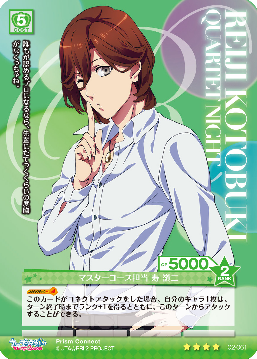 [コネクトアタック(4)]このカードがコネクトアタックをした場合、自分のキャラ1枚は、ターン終了時までランク+1を得るとともに、このターンからアタックすることができる。