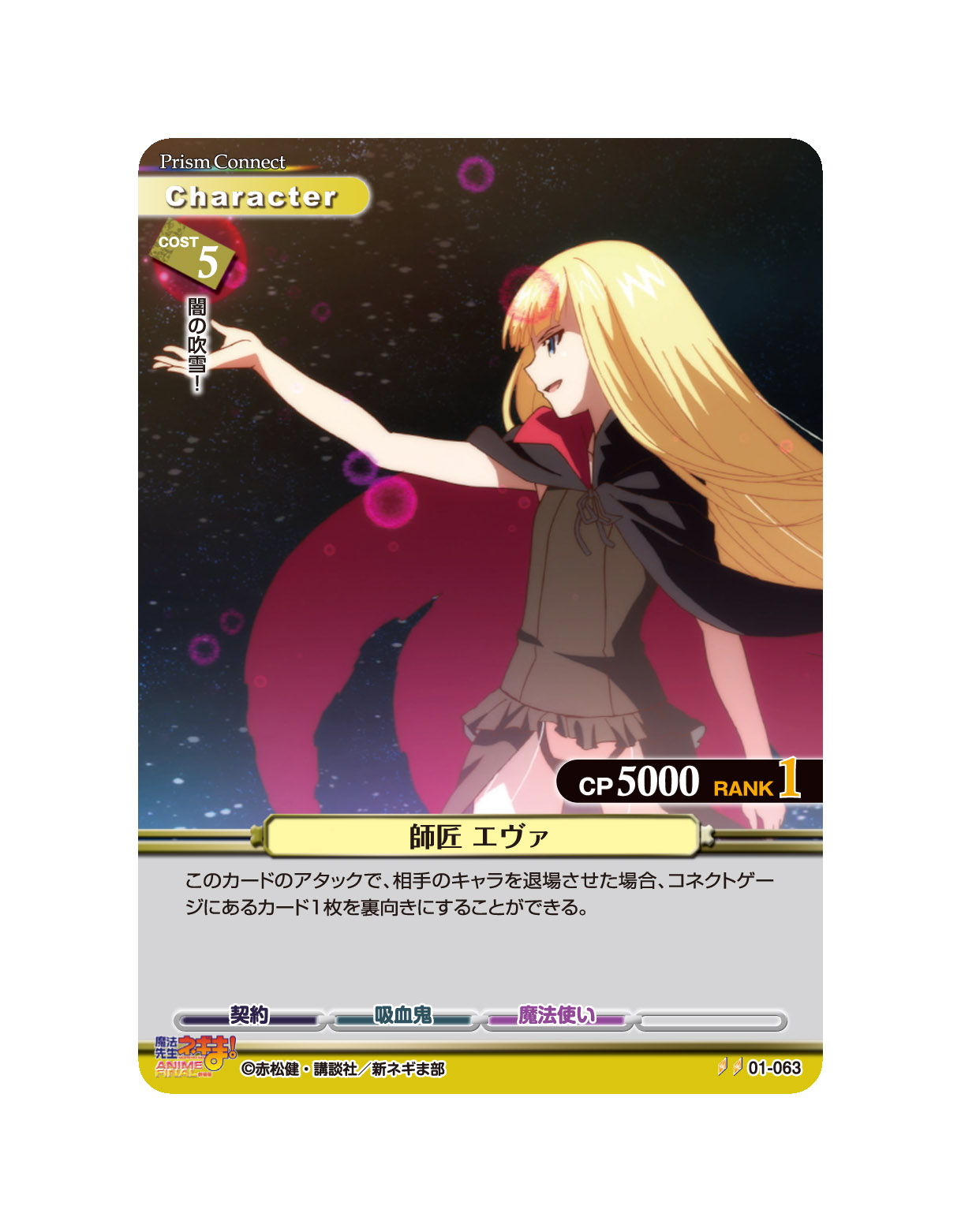 このカードのアタックで、相手のキャラを退場させた場合、コネクトゲージにあるカード1枚を裏向きにすることができる。