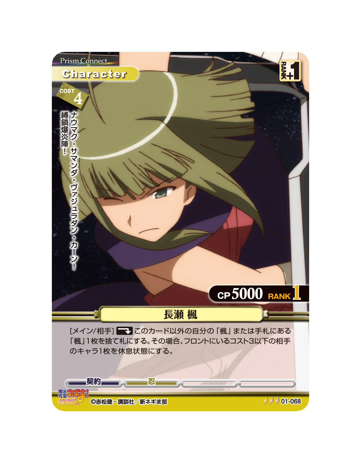[メイン/相手]《休》このカード以外の自分の「楓」または手札にある「楓」1枚を捨て札にする。その場合、フロントにいるコスト3以下の相手のキャラ1枚を休息状態にする。