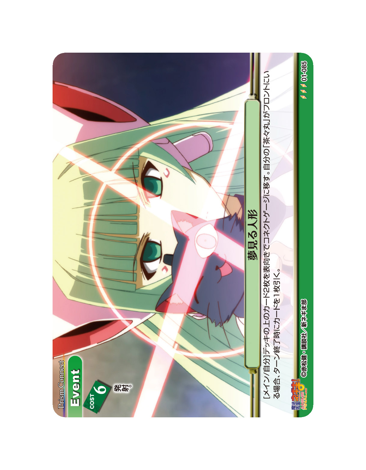 [メイン/自分]デッキの上のカード2枚を表向きでコネクトゲージに移す。自分の「茶々丸」がフロントにいる場合、ターン終了時にカードを1枚引く。
