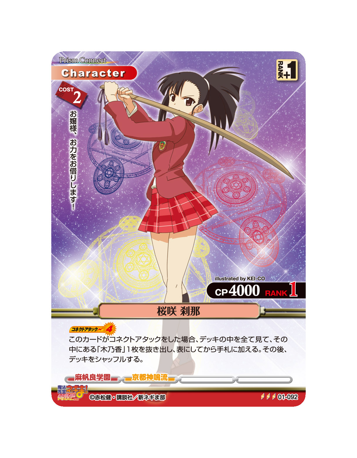 [コネクトアタック(4)]このカードがコネクトアタックをした場合、デッキの中を全て見て、その中にある「木乃香」1枚を抜き出し、表にしてから手札に加える。その後、デッキをシャッフルする。